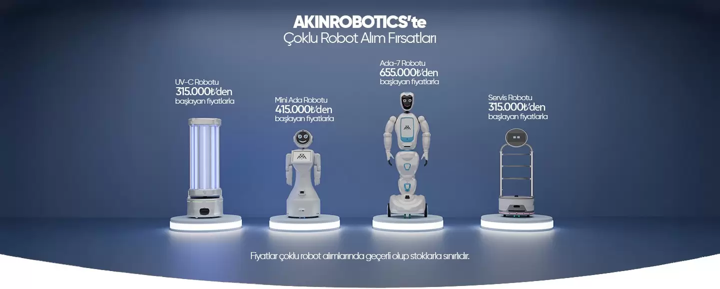 Teknolojinin hızla geliştiği dünyada Sosyal Robotlar hizmet sektöründe birçok alanda görev almaktadır. AKINROBOTICS tarafından üretilen Mini ADA Robot; turizm, sağlık, eğitim, hızlı tüketim başta olmak üzere birçok sektörde sorunsuz ve eğlenceli hizmet verebilmektedir. Yazılım ve robot arayüz çalışmaları da AKINROBOTICS çatısı altında geliştirilen Mini ADA Robot; işinizi geliştirmek, fark yaratmak, müşterilerinize farklı çözümler sunarak daha hızlı, daha keyifli, daha yenilikçi hizmet vermek için sizleri bekliyor.